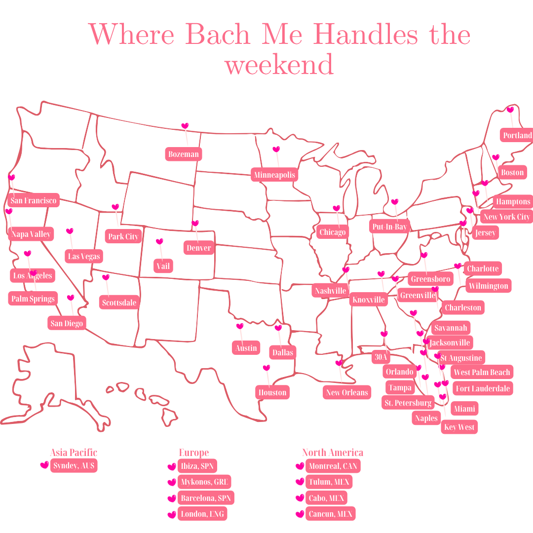 From custom decor to weekend itineraries, Bach Me plans unforgettable bachelorette trips in Miami, Nashville, Scottsdale, and beyond.