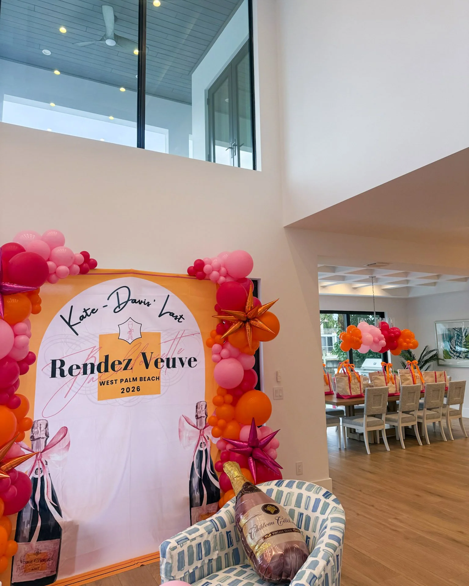 Champagne Station ~ 4 bottles of champagne, 10 custom labeled flutes, bride straw, 9 squad straws, and napkins — set up and styled by our team, ready the moment you walk in