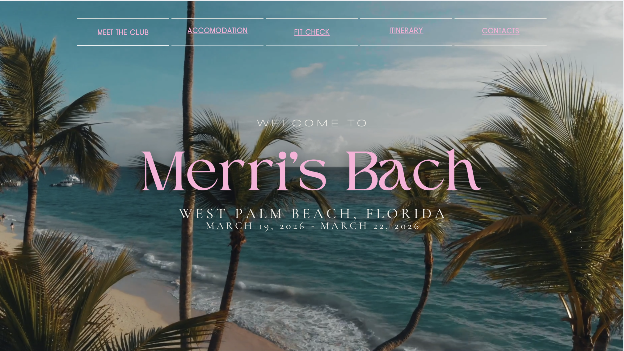 A fully custom bachelorette party website built from scratch for your theme, group details, and weekend itinerary. Perfect for sharing hotel links, dress codes, the weekend schedule, and the vibe with your whole squad. No reused templates — every site is built specifically for your bride.